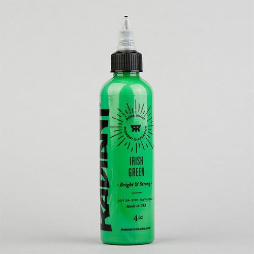 Radiant Colors, sterilize edilmiş, kullanımı kolay, saf, parlak ve uzun süre dayanan renklerde dövme boyaları üretmeye kendini adamıştır. Homojenik sıvı karışımı sağlam, uzun ömürlü, parlak bir renk verir.